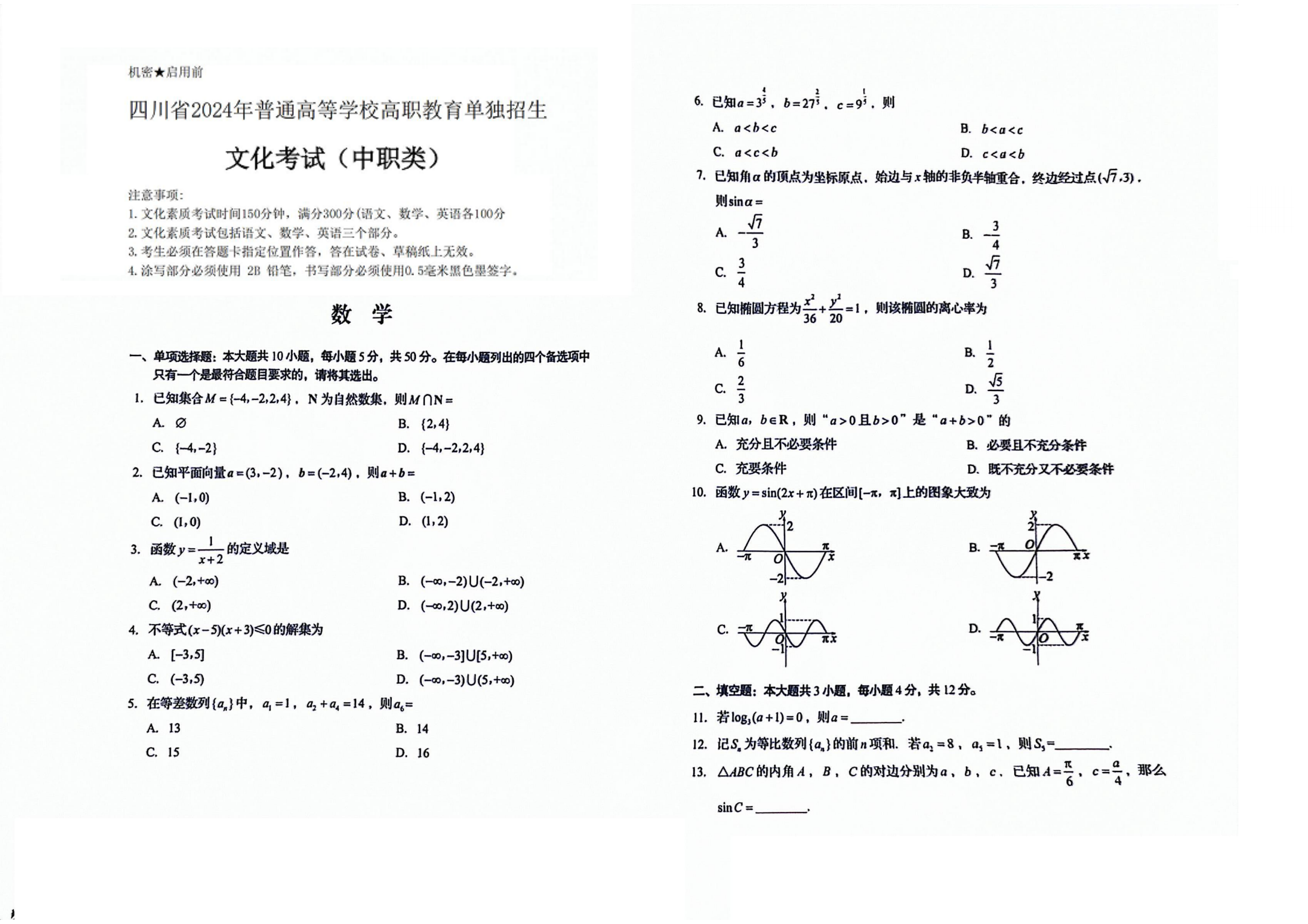 - 2025-05-22 2024年四川单招普高类数学真题卷